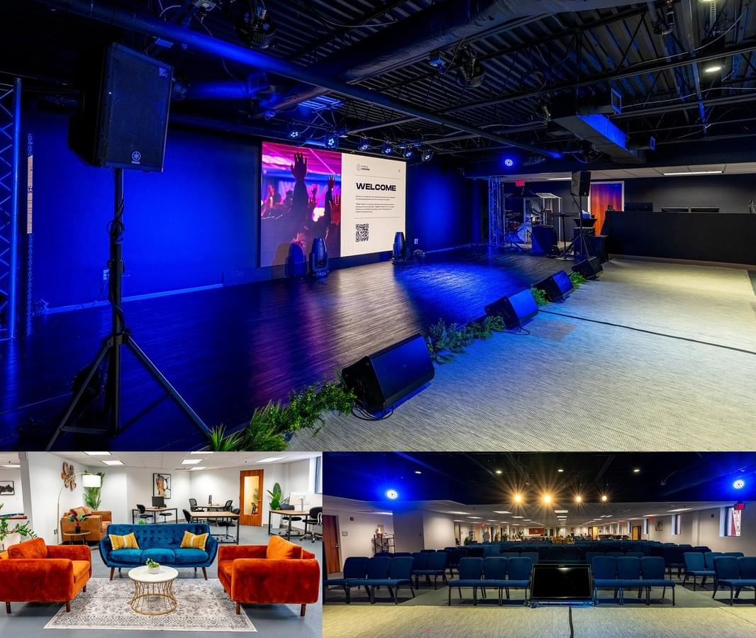 This bright, open-concept space is the perfect combination of professional event space and relaxed, friendly atmosphere with plenty of room and spots to sit and talk.